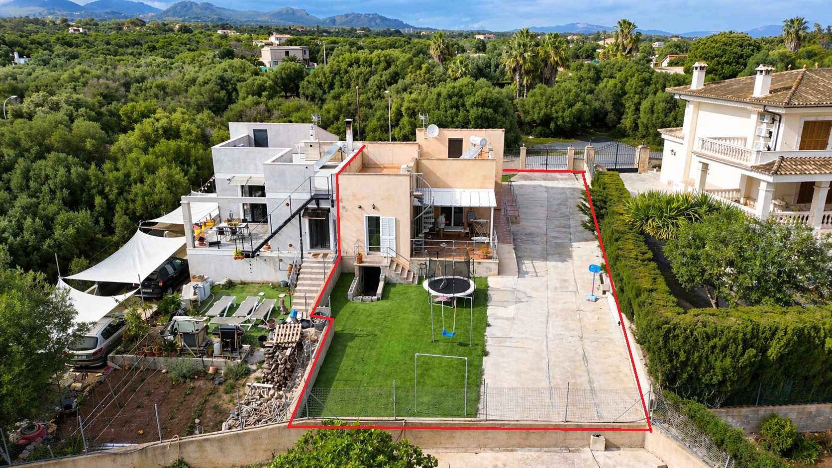 La vivienda forma parte de una parcela de 861 m² dividida en dos, correspondiendo a esta propiedad el 50% de participación, lo que permite disfrutar de amplios espacios exteriores en un entorno tranquilo.